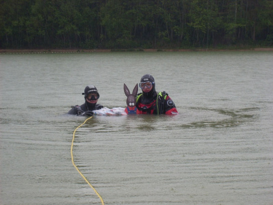 Um auch einen echten Osterhasen unter Wasser suchen zu können, hatten die Taucher Carsten Recker und André Füllenkemper den Holzhasen mit allerlei Leckerreien bestückt und mit Blei präpariert, um diesen schon eine Stunde vor Veranstaltungsbeginn im See versenkt zu können. Nachdem sich alle anderen Taucher am DLRG Heim in Warendorf getroffen hatten, die Tauchsachen im Einsatzfahrzeug verstaut waren, fuhren alle gemeinsam nach Sassenberg. Dort teilte Einsatzleiterin Sandra Fahlenbreder alle Taucher ein und es wurde damit begonnen in unterschiedlichen Teams den Hasen im Schweibenwischersuchtauchen zu suchen. Dabei lautet für die Signalfrauen und –männer die Aufgabe die Taucher in Scheibenwischertechnik mittels Signalleinen vom Ufer aus den Se ... Mehr erfahren