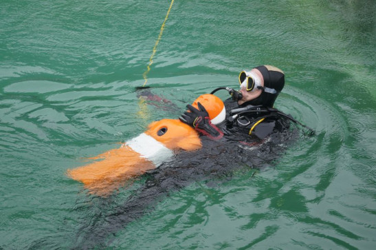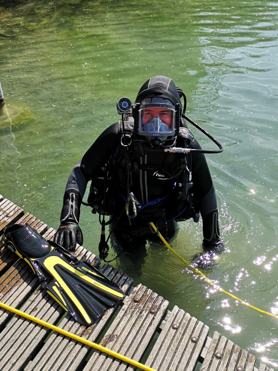 Auch einen weiteren Schritt auf dem Weg zum zukünftigen Einsatztaucher haben die Anwärter hinter sich gelassen. Am vorletzten Samstag haben die Anwärter mit zum Teil schweren Gerät im Tuttenbrocksee in Beckum gearbeitet. Auf dem Lehrplan stand das "Arbeiten unter Wasser". Der Vormittag startete mit dem theoretischen Teil. Inhalte waren unter anderem der sichere Umgang und Einsatz von Hebemitteln. Nach dem Mittag wurde das Erlernte in der Praxis angewendet. Drei Aufgaben warteten dabei auf die Tauchanwärter. Die erste Aufgabe einen Rohrflansch zu verschrauben. Was über Wasser eine einfache Übung ist, ist unter Wasser schon eine knifflige Aufgabe. Es müssen dabei acht Schrauben mit den Muttern verschraubt werden, ohne Sicht mit kal ... Mehr erfahren