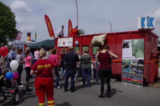 Er fällt sofort ins Auge, der große rote Container direkt vor dem neuen Gerätehaus des Löschzuges Hoetmar. Gefüllt ist er bis oben hin mit frischem Wasser und die ersten Kinder drücken sich schon die Nase an den eingearbeiteten Scheiben platt. Richtig spannend wird es aber erst, als der erste Taucher ins Wasser springt. Denn gemeinsam präsentierten die DLRG (Deutsche Lebens-Rettungs-Gesellschaft) Ortsgruppen Sassenberg und Warendorf ihre Arbeit bei der Einweihungsfeier der Feuerwehr. Ein klares Highlight war dabei natürlich der Tauchcontainer, den die Feuerwehr Ennigerloh zur Verfügung gestellt hatte. Dort konnten die Besucher einmal live die Einsatztaucher der Ortsgruppen in Aktion erleben. Unter den Erklärungen weiterer Einsatzkr&au ... Mehr erfahren