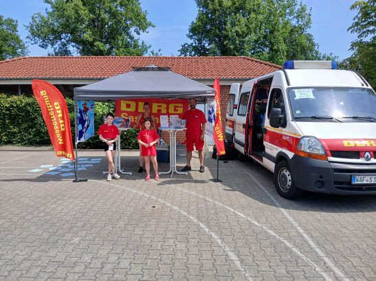 Heute waren wir mit einem Stand auf dem Spargelfrühling in Füchtorf. Zusätzlich waren wir mit einem Erstversorungstrupp vor Ort, um im Notfall schnell Hilfe leisten zu können. Wie immer lockte die Hüpfburg bei zum Glück trockenem Wetter viele Kinder an. Außerdem hatte die Jugend als besonderes Angebot ein Baderegelmemory zum Selberbasteln angeboten. Und auch unser Motorrettungsboot "Albatros" begeisterte die kleinen Gäste, während sich die Eltern über unser Schwimmangebot informieren konnten. Dann kam am Nachmittag auch noch Robbe "Nobbi" zu Besuch, um eine Runde über den Spargelfrühling zu drehen. Ein super Tag! ... Mehr erfahren