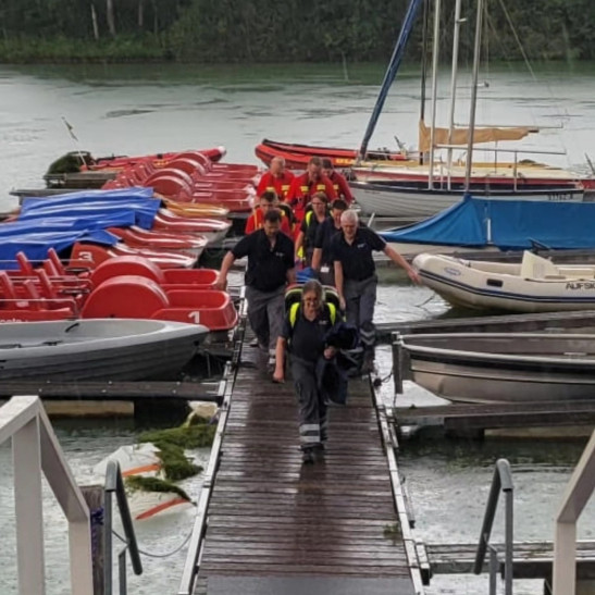 Nachdem sich die Helfer am Boot gesammelt hatten ging es zum Feldmarksee. Hier wurde das Boot am Strand geslippt, um auch das zu Wasser lassen ohne entsprechende Rampen zu üben. In mehreren Gruppen wurden dann verschiedene Übungen durchgeführt. Während eine Gruppe auf dem Motorrettungsboot „Albatros“ einige Manöver und Übungsfahrten durchführte, wurden in einer zweiten Gruppe der Umgang mit Leinen besprochen und verschiedene seemännische Knoten geübt. Außerdem war das Anlegen und der richtige Umgang mit Rettungswesten Thema des Abends. Mit dem Sonnenuntergang endete der Teil auf dem Wasser, das Boot wurde geslippt und auf dem Bootstrailer verstaut, um nach der Reinigung wieder für den nächsten Einsatz bereit zu sei ... Mehr erfahren